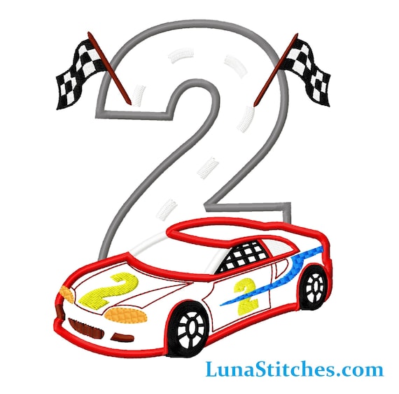 Red Race Car Two 2 Checkered Flags Applique Embroidery Design Etsy